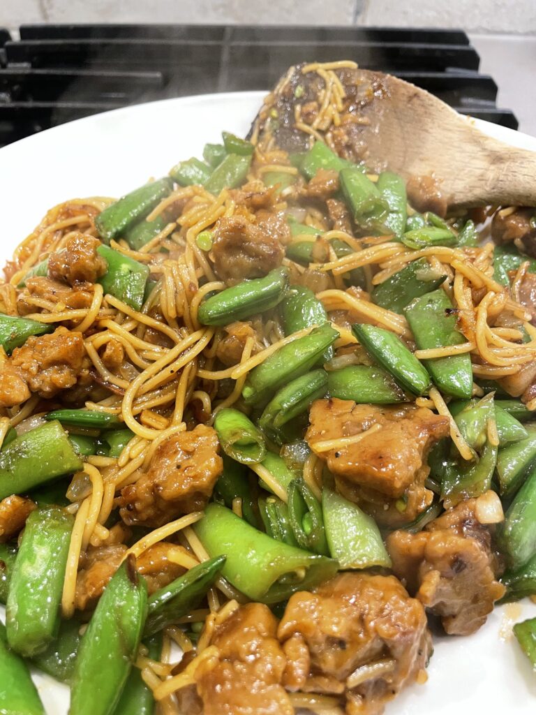 Anyways we had a yummy noodle stir fry (below) and it reminded me that my bestie recommended –