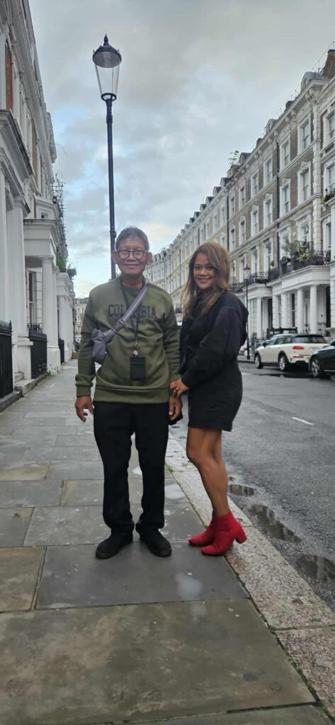 Picture of my dad and me in London. He has retired from nursing but has stayed purpose filled in the Philippines managing and running a 52 hectare farm full of pineapple, coconuts, and rice fields among other things. He oversees several families who work on the farm.