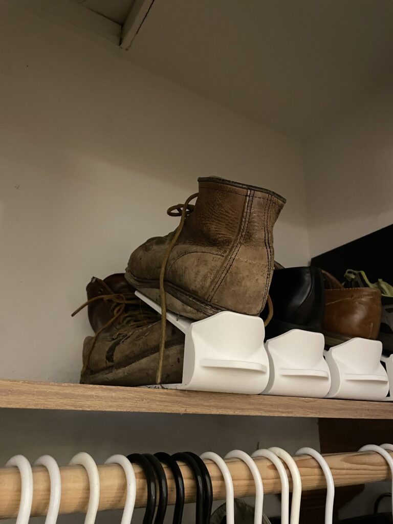 This allows for three cool things, double the space for shoes, being able to still see what shoe lies behind, and being able to still include boots! Nate’s point.