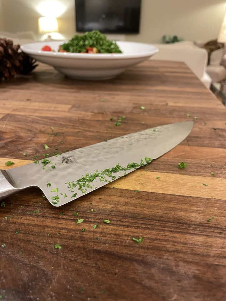 The best investment to my years of cooking has been to take a knife skills class! I had a friend who was a chef and worked at Whole Foods. At the time, Nate and I didn’t have kids yet and we were really into taking cooking classes together as a date. One day, I asked her which class she recommended and she said “If there was only one class I could recommend you take, it would be a knife skills class because it will speed up your time in the kitchen and make cooking more enjoyable.” She was so right! Now, more than 10 years later, I’m so glad I took that class, and I think of her every time I cut a bell pepper or chop up some herbs.