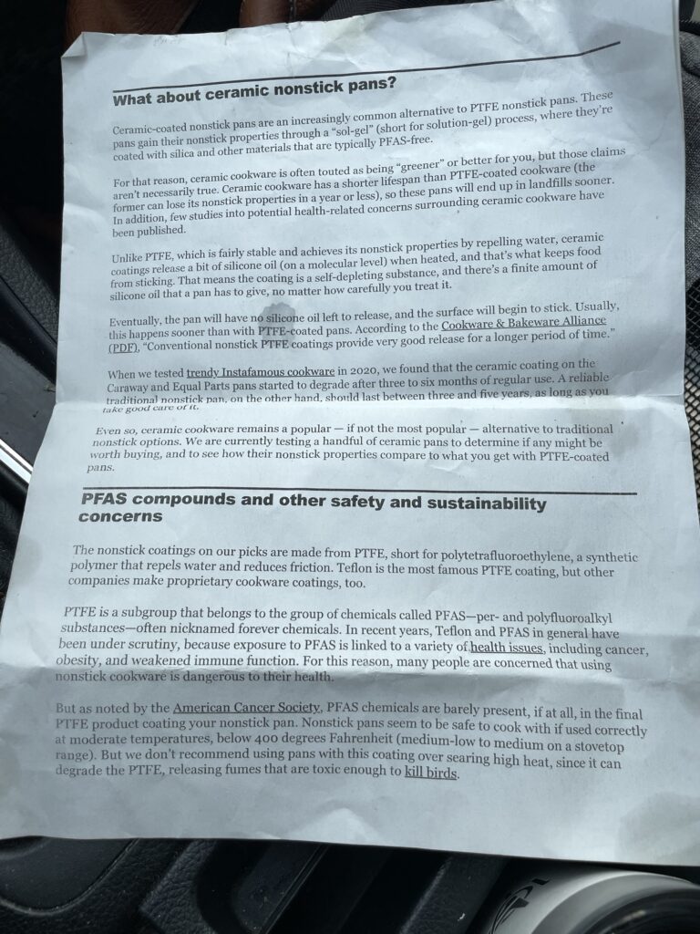 This is a 14 inch pan my brother just gifted me for my bday. Did you know that a 14 pan even existed? I did not! Now I don’t have to cook my Brussels sprouts in batches! My largest pan was a 12 inch before this one and now I’ve got 2 more inches all the way around to stuff more food! And yes, we’ve been lied to again- ceramic nonstick pans are not good.